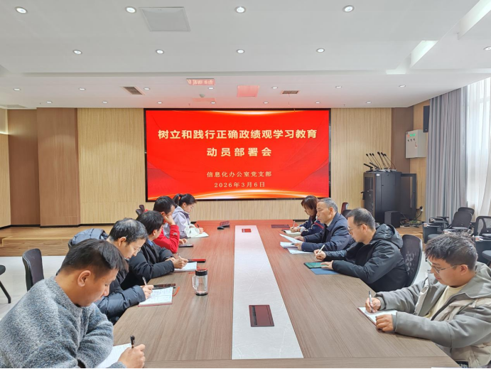 3月6日下午,信息化办公室党支部召开树立和践行正确政绩观学习教育动员部署会。支部书记谢日行主持会议,支部全体党员、入党积极分子及业务骨干参加会议。