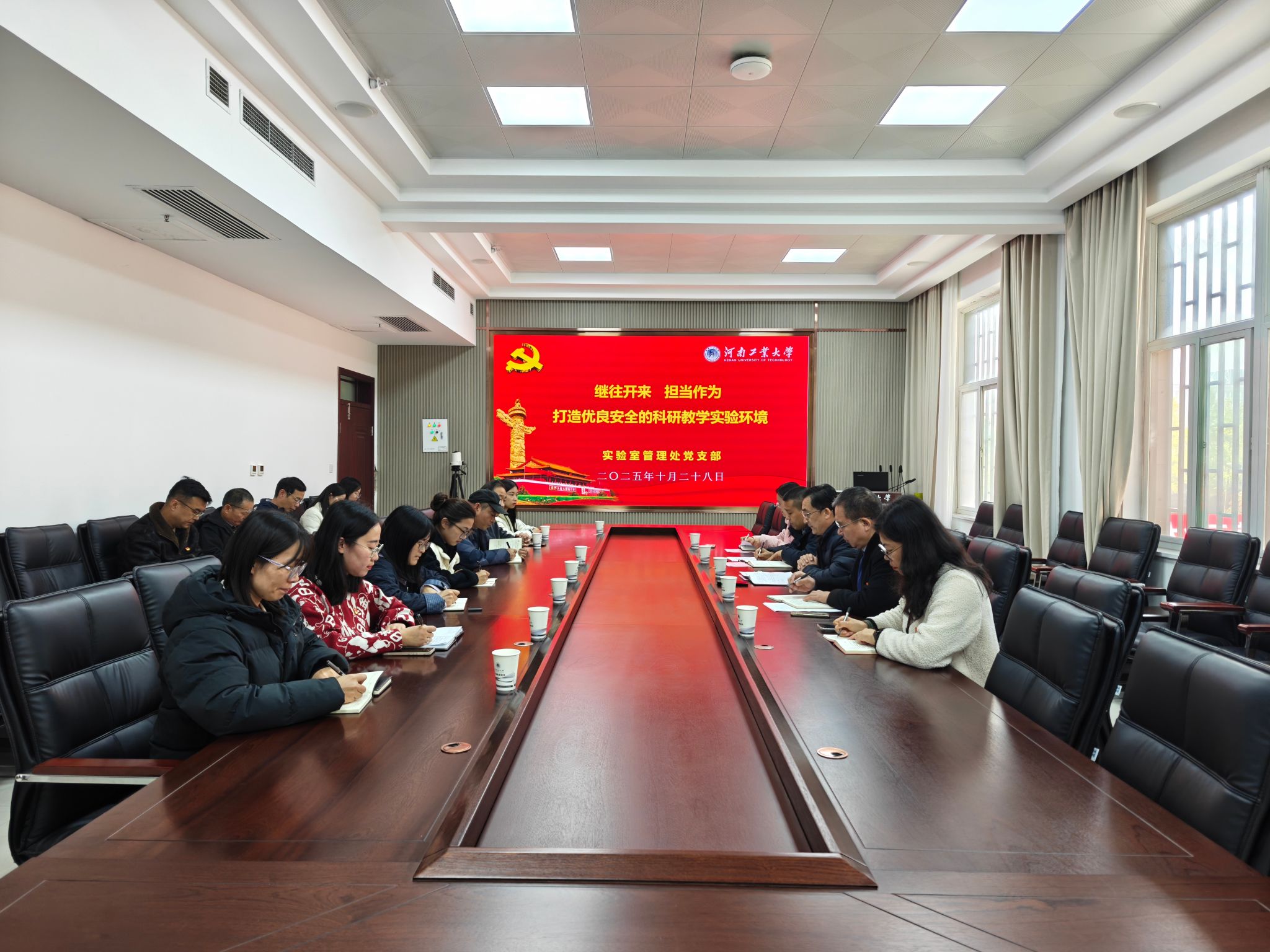 为深入学习贯彻党的二十届四中全会精神,切实把会议精神转化为实验室建设与安全管理等工作的效能,10月28日,机关党委实验室管理处党支部组织召开“继往开来 担当作为 打造优良安全的科研教学实验环境”主题党日活动。活动通过专题学习、通报总结、交流研讨等形式,引导全体党员立足岗位,主动作为,为学校高质量发展筑牢实验室安全防线。实验室管理处党支部书记刘国锋主持活动。