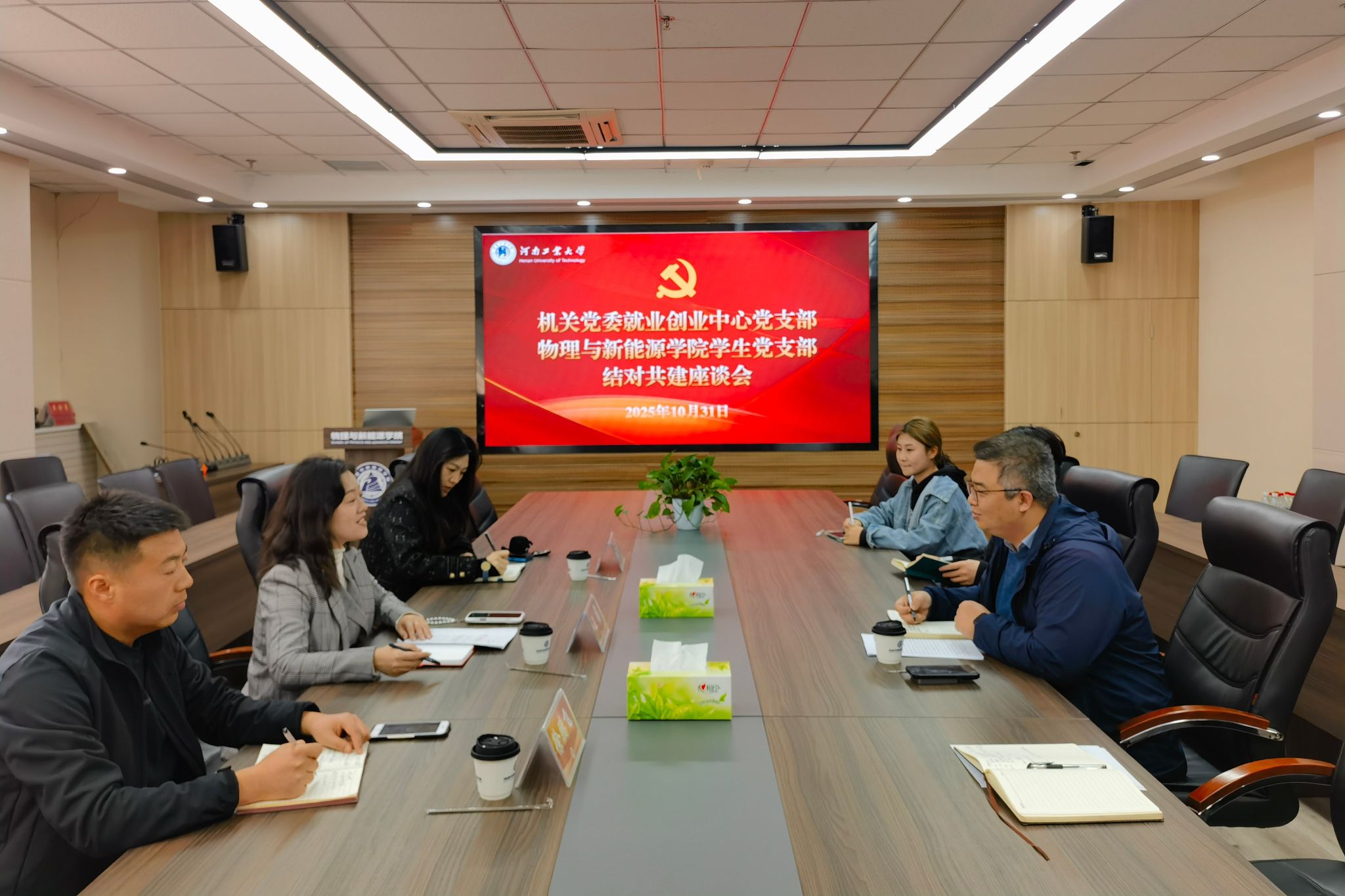 10月31日,机关党委就业创业中心党支部与物理与新能源学院党委学生党支部在惟德楼307会议室召开结对共建座谈会,进一步贯彻落实校党委《关于开展“双融双促”机关党支部与学院党支部结对共建行动的通知》要求。就业创业中心副主任王萌、创业指导科科长徐鹏飞、市场信息科科长石丹丹,物理与新能源学院师生党员代表参加会议,座谈会由物理与新能源学院党委副书记张宾主持。