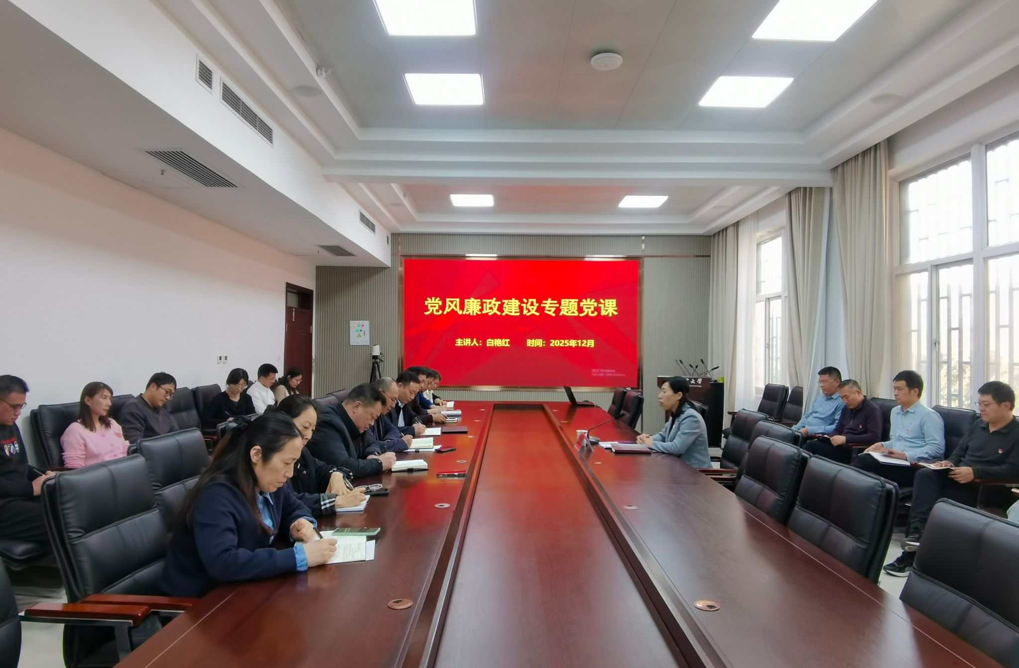 为深入学习贯彻党的二十届四中全会精神,12月17日下午,副校长白艳红以《深悟党的二十届四中全会精神实质 勇担“十五五”奋进新使命》为题,为科研部和学科建设办公室的全体教师作专题宣讲。