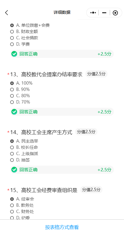 本次竞答采用“线上随时答、系统即时评”的形式,共设置40道单选题,题库内容紧扣高校工会工作与政策基础,满分100分。活动期间,会员们纷纷表示,竞答内容贴近实际,把“会费比例”“节日慰问标准”“教代会流程”等日常关心的政策细节转化为学习要点,既增长了知识,又增强了信心。